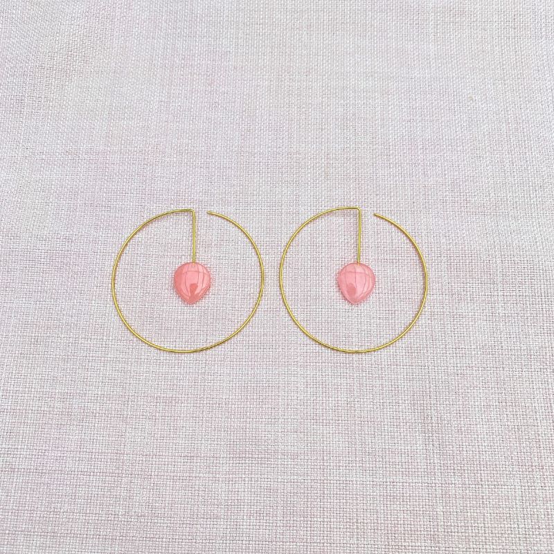 Cirkel øreringe i forgyldt sølv med lyserød agat
