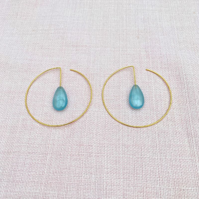 Cirkel øreringe i forgyldt sølv med store akvamariner