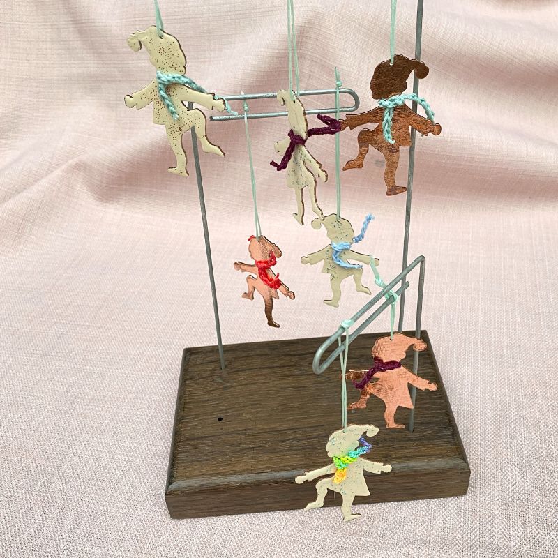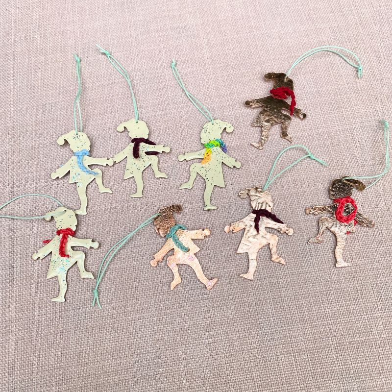 Søde nisse ophæng lavet i kobber. Stilen er nostalgisk og fører tanker hen til Lilleper i sneen og julebal i nisseland. De er lavet i ren kobber med struktur i overfladen. Fås i ren kobber eller i cremefarvet emalje med lidt glimmer på den ene side og ren kobber på den anden. Årets hængenisser har alle fået et hæklet halstørklæde på.