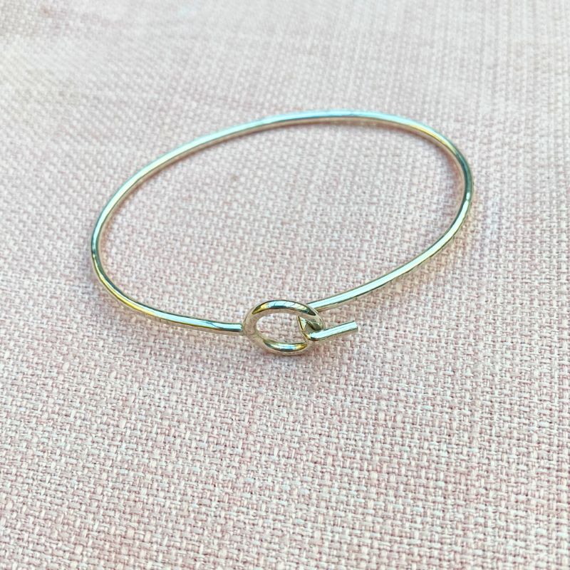 Enkelt sølv armbånd med krog lås. Overfladen er let struktureret.