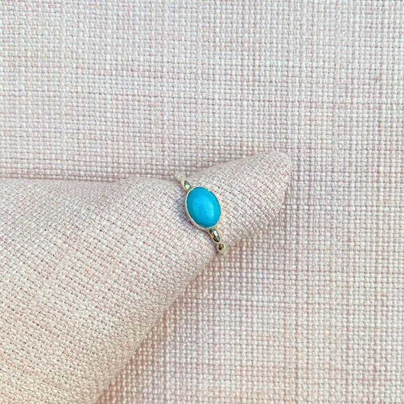 Lille sølvring med indfattet oval turkis. ringen passer til den spinkle hånd eller måske som lillefinger ring..